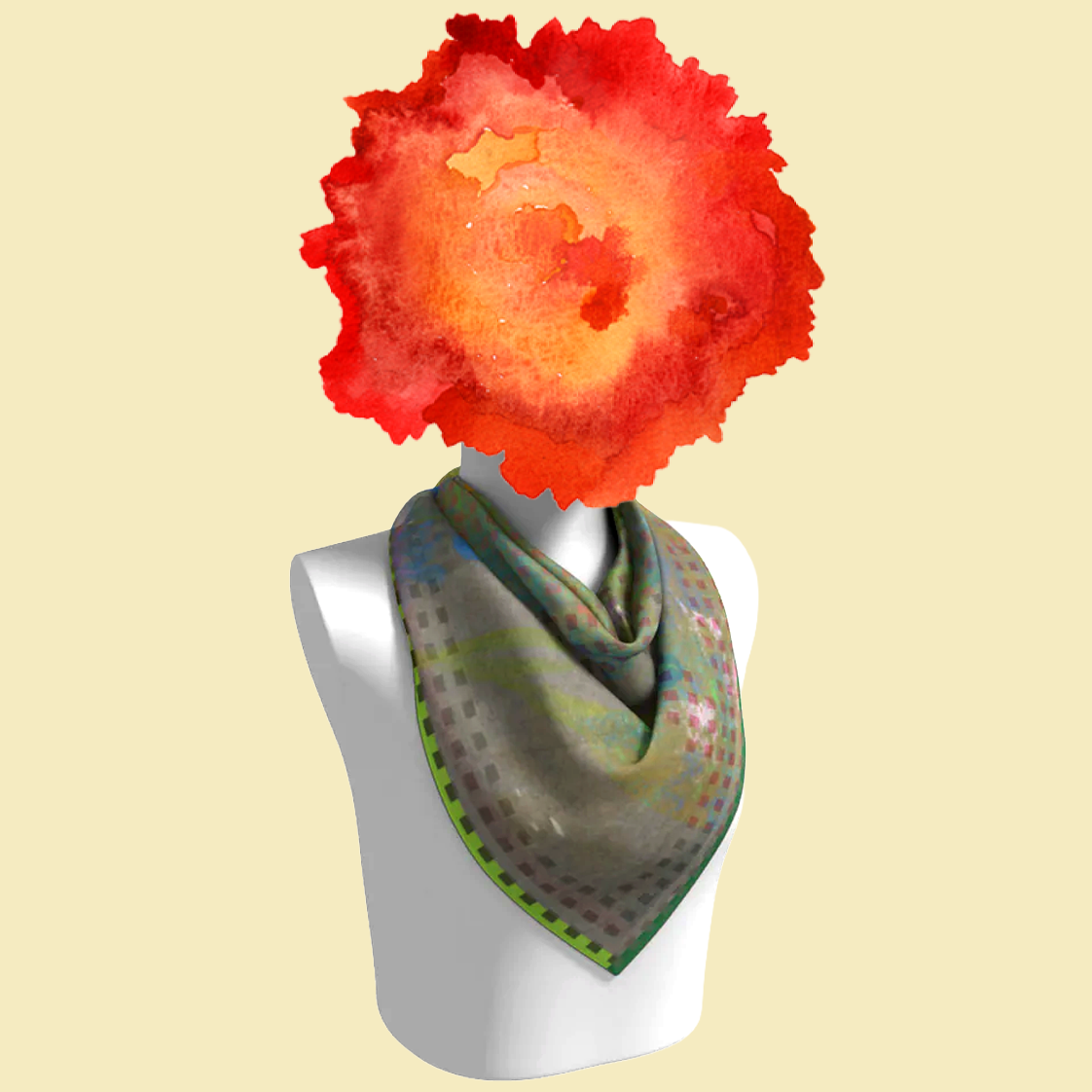 Think archival flower studies from the Smithsonian American Art Museum, stacked and overlapped in sharp greens, yellows, pinks, and blues. Underneath, a subtle geometric framework keeps everything from going full chaos. The result reads more graphic print than garden scene.